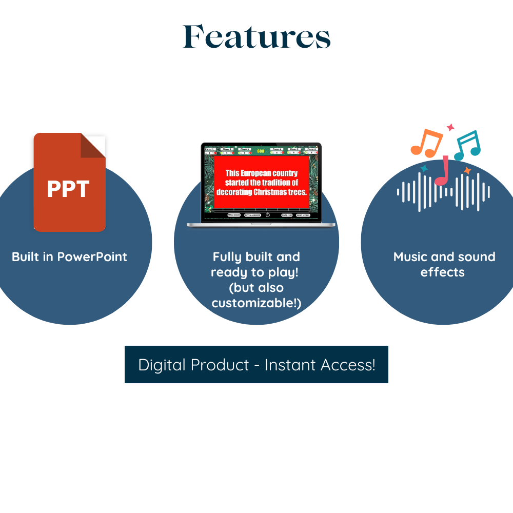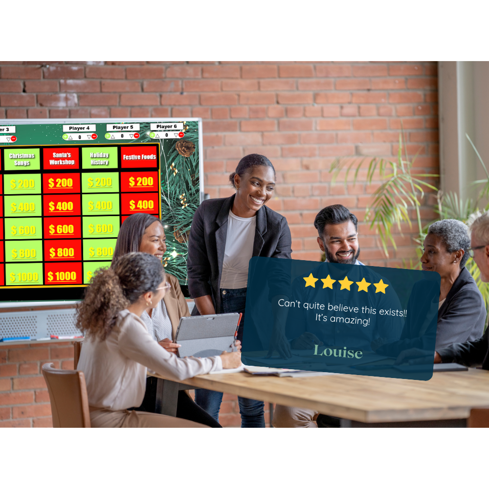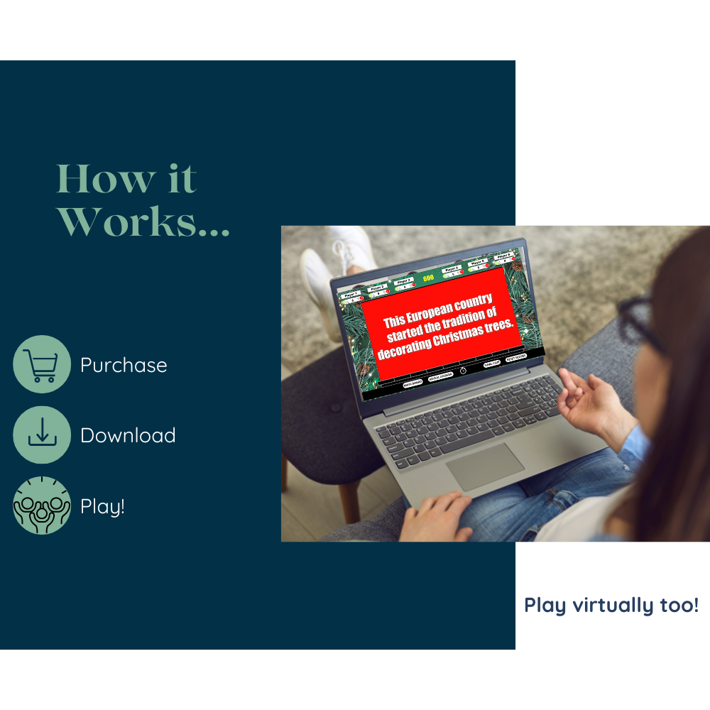 Throw the ultimate holiday party with our Christmas Games Bundle featuring Christmas themed versions of Friendly Feud (Family Feud style) and JParty (Jeopardy style). Perfect for family gatherings, office parties, church events, and virtual celebrations!