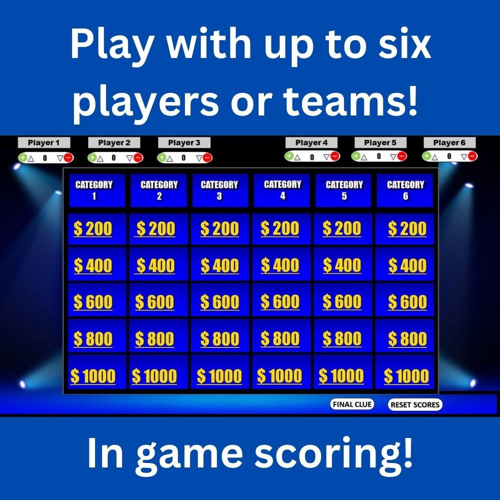It's JParty for PowerPoint, a fully built Jeopardy style game, ready to download and play!