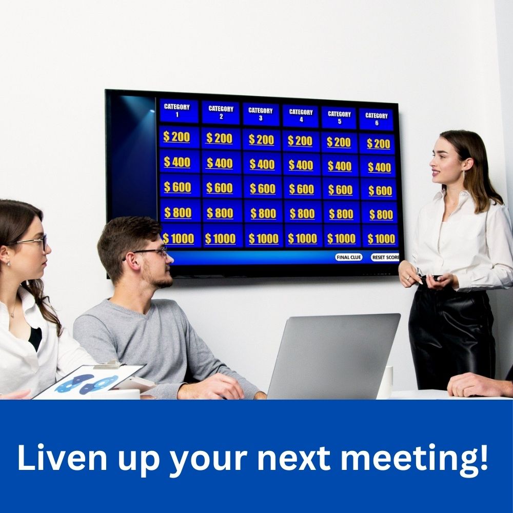 It's JParty for Google Slides! A Jeopardy style game that you can customize to fit your training, meeting, party or other event!