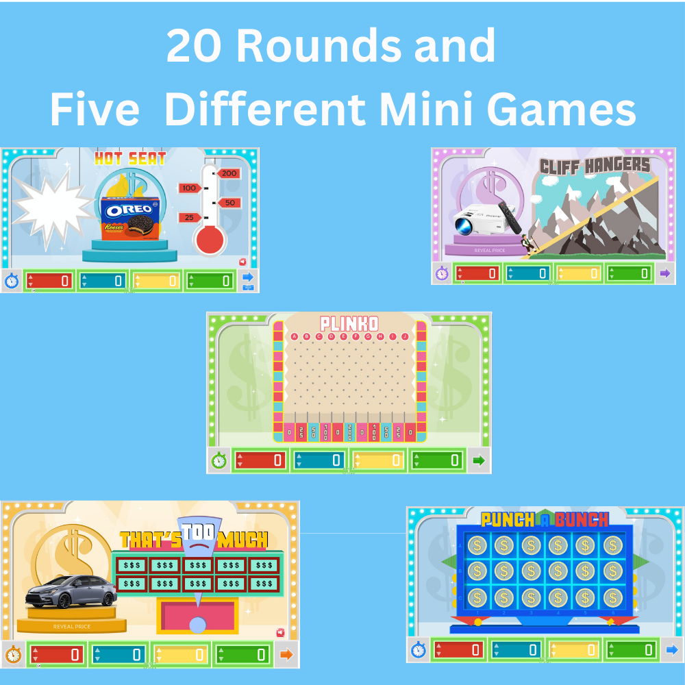 - Ready to play Price Is Right style mini-games - these are all ready to play but you can switch in your own products and prices if you want to