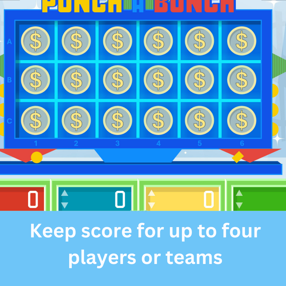 - 20 customizable rounds – 4 rounds each of 5 different mini-games plus a final Big Wheel showdown