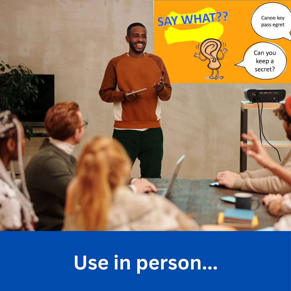 This Mad Gab style game creates instant engagement and laughter. Whether you're leading a youth group, hosting a party, or looking for a fun training activity, Say What? delivers entertainment that brings people together. The gibberish format levels the playing field—anyone can win!