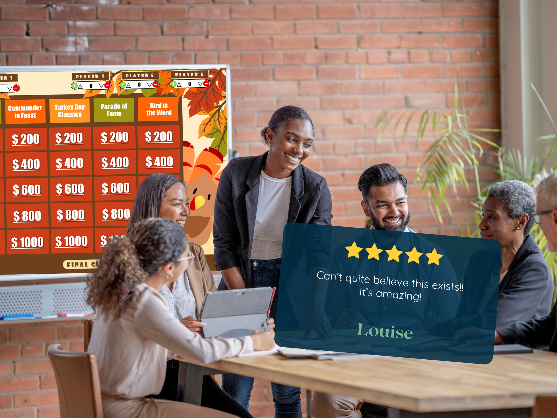 - JParty Thanksgiving Edition - Full Game Version: Challenge your guests with this Thanksgiving-themed Jeopardy style trivia game featuring categories about Thanksgiving history, traditions, food, and fun facts.